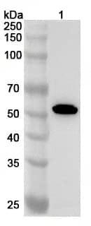 Western blot analysis was performed using anti-MAGEA6 polyclonal antibody at 1ug/mL on various samples.Lane 1:Mouse testis lysate