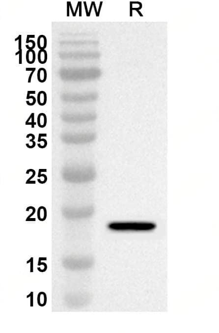 Western blot analysis was performed using anti-Human IL36G/IL-1F9 polyclonal antibody at 1ug/mL on recombinant Human IL36G/IL-1F9 (Catalog No.:TD-HV952022).
