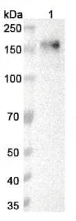 Western blot analysis was performed using anti-NEO1 polyclonal antibody at 1μg/ml on various samples.Lane 1:Jurkat cell lysate