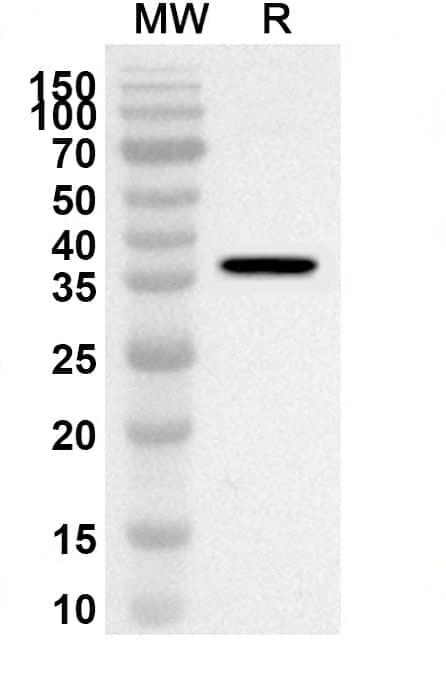 Western blot analysis was performed using anti-CD112/Nectin-2/NECTIN2 polyclonal antibody at 1ug/mL on recombinant CD112/Nectin-2/NECTIN2 (Catalog No.:TD-HV456012).