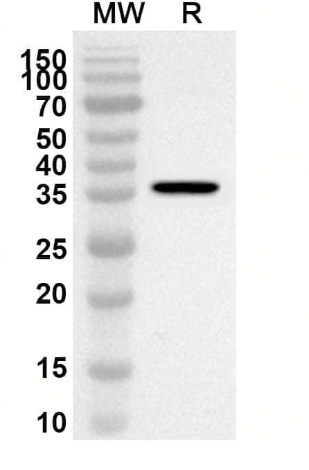 Western blot analysis was performed using anti-PLSCR4 polyclonal antibody at 1ug/mL on recombinant PLSCR4 (Catalog No.:TD-HV339012).