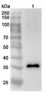 Western blot analysis was performed using anti-STX7 polyclonal antibody at 1ug/mL on various samples.Lane 1:Daudi cell lysate