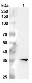 Western blot analysis was performed using anti-MSI2 polyclonal antibody at 1μg/ml on various samples.Lane 1:A549 cell lysate