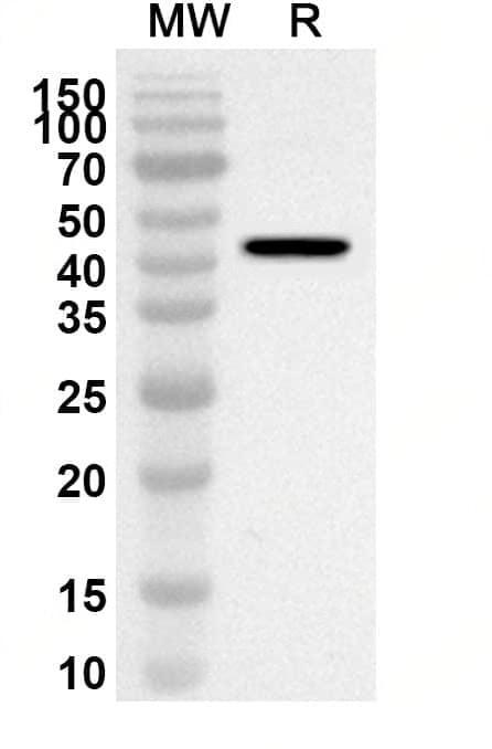 Western blot analysis was performed using anti-Human CD25/IL2RA polyclonal antibody at 1ug/mL on recombinant Human CD25/IL2RA (Catalog No.:TD-HF996012).