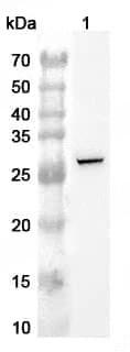 Western blot analysis was performed using anti-UPK1B polyclonal antibody at UPK1B on various samples.Lane 1:Mouse skin lysate