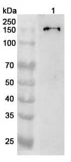 Western blot analysis was performed using anti-COL2A1 polyclonal antibody at 1ug/mL on various samples.Lane 1:HepG2 cell lysate