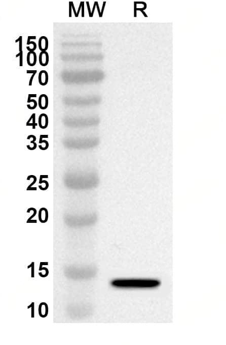 Western blot analysis was performed using anti-MIF polyclonal antibody at 1ug/mL on recombinant MIF (Catalog No.:TD-HB816012).