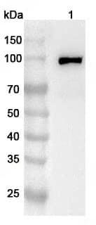 Western blot analysis was performed using anti-FSD2 polyclonal antibody at 1ug/mL on various samples.Lane 1:Mouse heart lysate