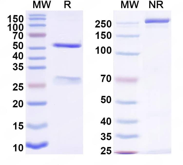 Detects Recombinant Nipah virus G protein/Glycoprotein G Protein, C-His (Catalog No.:TD-VK631011) in indirect ELISA. | SDS-PAGE for InVivoMAb Anti-Nipah virus/NiV G protein/Glycoprotein G Antibody (nAH1.3).