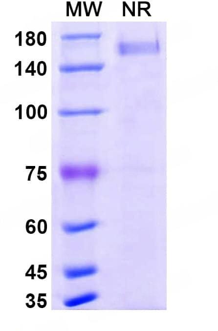 SEC-HPLC detection for Research Grade Befovacimab. | Detects TFPI in indirect ELISAs. | Flow-cytometry using anti-human TFPI antibody. HepG-2 cells were stained with an irrelevant antibody (Blue Histogram) or an anti-human TFPI monoclonal antibody (Catalog HY403016, Yellow Histogram) at a concentration of 5 µg/ml for 30 mins at RT. After washing, bound antibody was detected using a a Goat Anti-Human IgG H&L Polyclonal Antibody, FITC (abinScience: HF690414) and cells analysed on a NovoCyte Flow Cytometer. | SDS-PAGE for Research Grade Befovacimab