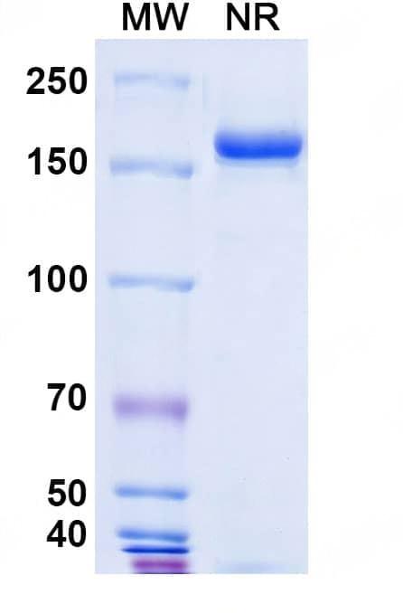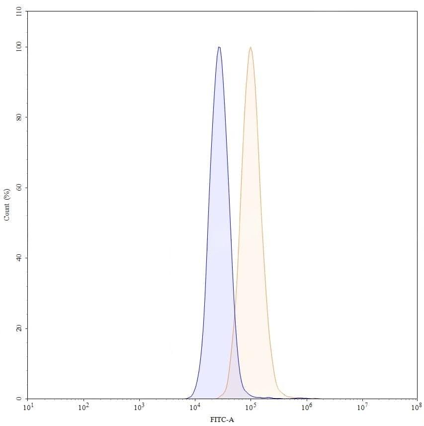 SEC-HPLC detection for Research Grade Pertuzumab. | Detects Human CD340/ERBB2/HER2 in indirect ELISAs. | SDS-PAGE for Research Grade Pertuzumab. | Flow-cytometry using anti-human CD340 antibody. MCF-7 cells were stained with an irrelevant antibody (Blue Histogram) or an anti-human CD340 monoclonal antibody (Catalog HY286026, Yellow Histogram) at a concentration of 5 µg/ml for 30 mins at RT. After washing, bound antibody was detected using a a Goat Anti-Human IgG H&L Polyclonal Antibody, FITC (abinScience: HF690414) and cells analysed on a NovoCyte Flow Cytometer. ### Flow-cytometry using anti-human CD340 antibody. MDA-MB-231 cells were stained with an irrelevant antibody (Blue Histogram) or an anti-human CD340 monoclonal antibody (Catalog HY286026, Yellow Histogram) at a concentration of 5 µg/ml for 30 mins at RT. After washing, bound antibody was detected using a a Goat Anti-Human IgG H&L Polyclonal Antibody, FITC (abinScience: HF690414) and cells analysed on a NovoCyte Flow Cytometer. ### Flow-cytometry using anti-human CD340 antibody. SK-BR-3 cells were stained with an irrelevant antibody (Blue Histogram) or an anti-human CD340 monoclonal antibody (Catalog HY286026, Yellow Histogram) at a concentration of 5 µg/ml for 30 mins at RT. After washing, bound antibody was detected using a a Goat Anti-Human IgG H&L Polyclonal Antibody, FITC (abinScience: HF690414) and cells analysed on a NovoCyte Flow Cytometer. | Flow-cytometry using FITC anti-human CD340 antibody. SK-BR-3 cells were stained with an irrelevant antibody (Blue Histogram) or an FITC anti-human CD340 monoclonal antibody (Catalog: HY286026, Yellow Histogram) at a concentration of 5 µg/ml for 30 mins at RT. After washing, and cells analysed on a NovoCyte Flow Cytometer.