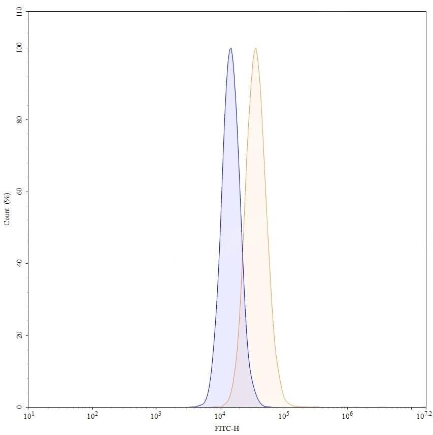 SEC-HPLC detection for Research Grade Batoclimab. | SDS-PAGE for Research Grade Batoclimab. | Flow-cytometry using FITC anti-human FCGRT antibody. HepG-2 cells were fixed and permeabilized, then stained with an irrelevant antibody (Blue Histogram) or an FITC anti-human FCGRT monoclonal antibody (Catalog: HX061036, Yellow Histogram) at a concentration of 5 µg/ml for 30 mins at RT. After washing, and cells analysed on a NovoCyte Flow Cytometer. ### Flow-cytometry using FITC anti-human FCGRT antibody. U937 cells were fixed and permeabilized, then stained with an irrelevant antibody (Blue Histogram) or an FITC anti-human FCGRT monoclonal antibody (Catalog: HX061036, Yellow Histogram) at a concentration of 5 µg/ml for 30 mins at RT. After washing, and cells analysed on a NovoCyte Flow Cytometer.