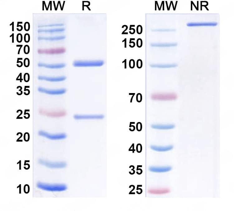 Detects OLR1/LOX-1 in indirect ELISAs. | SDS-PAGE for Research Grade Golocdacimab.