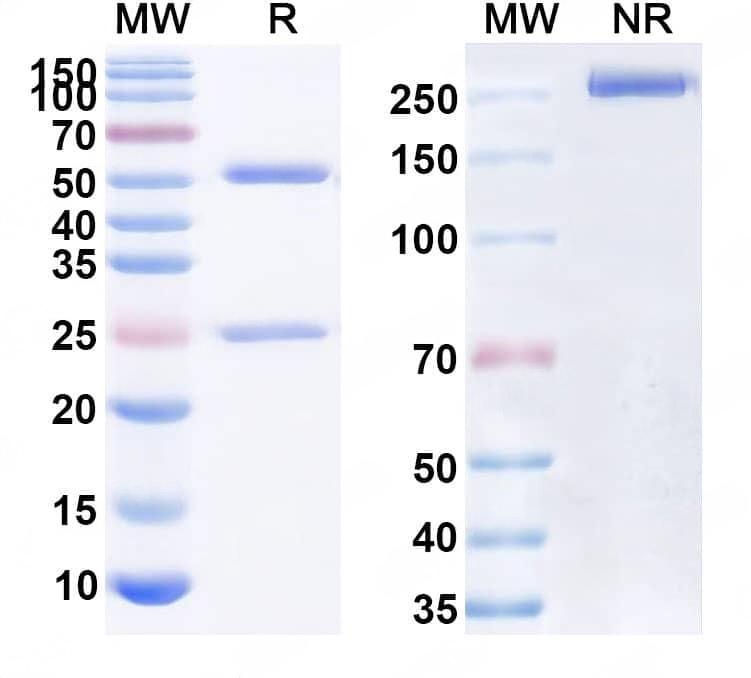 SEC-HPLC detection for Research Grade Alacizumab. | Detects Human CD309/KDR/VEGFR-2 in indirect ELISAs. | SDS-PAGE for Research Grade Alacizumab.