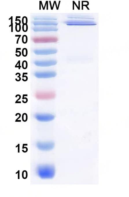 SDS-PAGE for Research Grade Donzakimig. | Detects recombinant IL13 (Catalog No:TD-HW632012) in indirect ELISA. ### Detects recombinant IL22 (Catalog No:TD-HV999012) in indirect ELISA. ### Detects recombinant human albumin (Catalog No:TD-HY411021) in indirect ELISA.