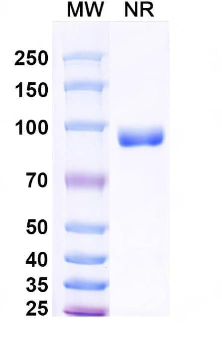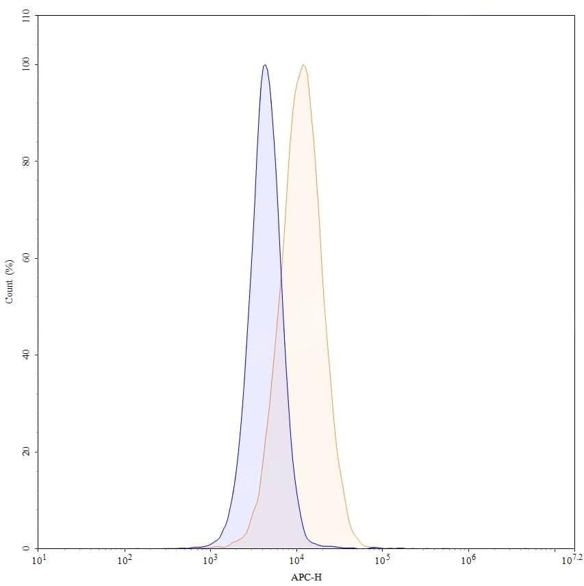 Detects Human CD274/PD-L1/B7-H1 in indirect ELISAs. | SDS-PAGE for Research Grade Envafolimab. | Flow-cytometry using APC anti-human CD274 antibody. MDA-MB-231 cells were stained with an irrelevant antibody (Blue Histogram) or an APC anti-human CD274 monoclonal antibody (Catalog: HV974046, Yellow Histogram) at a concentration of 5 µg/ml for 30 mins at RT. After washing, cells analysed on a NovoCyte Flow Cytometer. ### Flow-cytometry using FITC anti-human CD274 antibody. MDA-MB-231 cells were stained with an irrelevant antibody (Blue Histogram) or an FITC anti-human CD274 monoclonal antibody (Catalog: HV974046, Yellow Histogram) at a concentration of 5 µg/ml for 30 mins at RT. After washing, cells analysed on a NovoCyte Flow Cytometer. ### Flow-cytometry using PE anti-human CD274 antibody. MDA-MB-231 cells were stained with an irrelevant antibody (Blue Histogram) or an PE anti-human CD274 monoclonal antibody (Catalog: HV974046, Yellow Histogram) at a concentration of 5 µg/ml for 30 mins at RT. After washing, cells analysed on a NovoCyte Flow Cytometer. ### Flow-cytometry using anti-human CD274 antibody. Untransfected cells (blue Histogram) and Transfected cells (Yellow Histogram) were stained with an anti-human CD274 monoclonal antibody (Catalog: HV974046) at a concentration of 5 µg/ml for 30 mins at RT. After washing, bound antibody was detected using a Goat Anti-Human IgG H&L Polyclonal Antibody, FITC (abinScience: HF690414) and cells analysed on a NovoCyte Flow Cytometer.