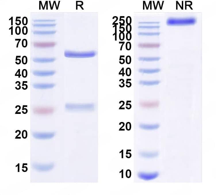 SEC-HPLC detection for Research Grade Enoticumab. | Detects DLL4 in indirect ELISAs. | SDS-PAGE for Research Grade Enoticumab. | Western blot analysis was performed using anti-DLL4 monoclonal antibody at 1ug/mL on various samples.Lane 1:recombinant human DLL4 (Catalog No:TD-HV571011)Lane 2:negative control