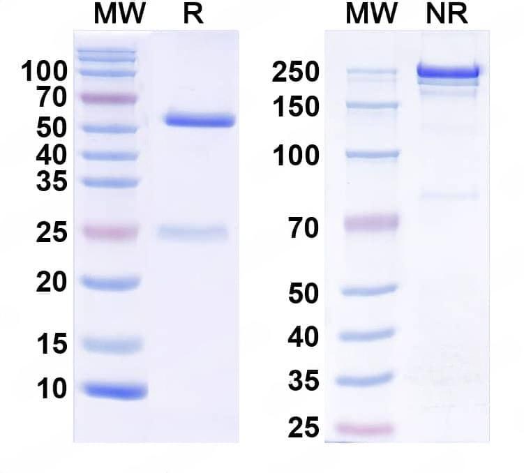 Detects Human β-tryptase/TPSAB1 in indirect ELISAs. | SDS-PAGE for InVivoMAb Anti-Human β-tryptase/TPSAB1 Antibody (31A). | Western blot analysis was performed using anti-TPSAB1/Tryptase-1 monoclonal antibody at 1ug/mL on various samples.Lane 1:recombinant human TPSAB1/Tryptase-1 (Catalog No.:TD-HS931011)Lane 2:negative control