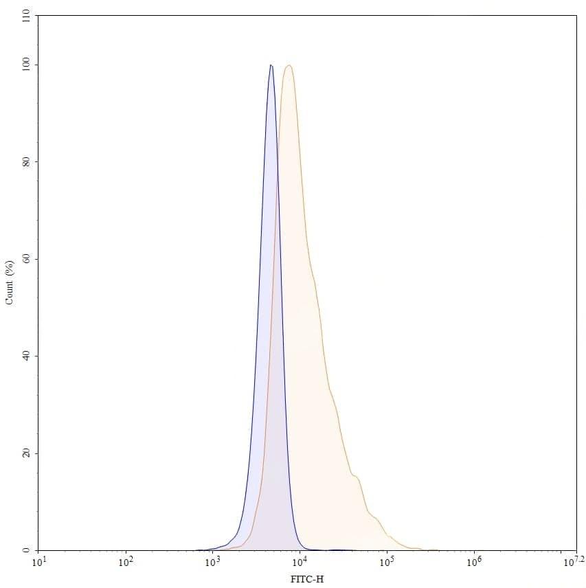 SEC-HPLC detection for Research Grade Adalimumab. | Detects Human TNFa/TNF-alpha in indirect ELISAs. | Flow-cytometry using anti-human TNFa antibody. 293T Transtected cells were stained with an irrelevant antibody (Blue Histogram) or an anti-human TNFa monoclonal antibody (Catalog HF879026, Yellow Histogram) at a concentration of 5 µg/ml for 30 mins at RT. After washing, bound antibody was detected using a a Goat Anti-Human IgG H&L Polyclonal Antibody, FITC (abinScience: HF690414) and cells analysed on a NovoCyte Flow Cytometer. | SDS-PAGE for Research Grade Adalimumab.