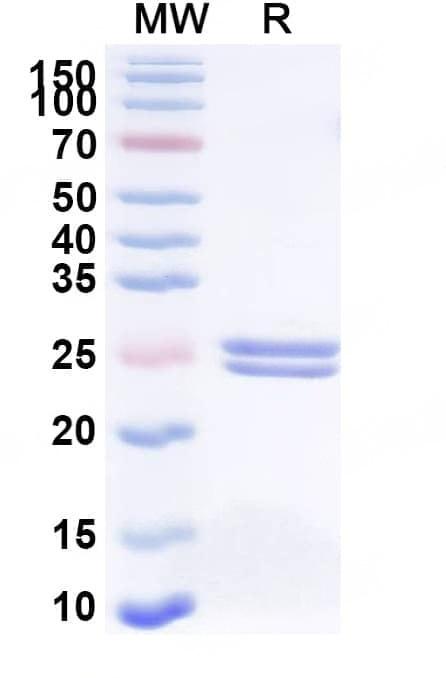 Detects Human TNFa/TNF-alpha in indirect ELISAs. | SDS-PAGE for Research Grade Certolizumab | Flow-cytometry using anti-human TNFa antibody. 293T transfected cells were stained with an irrelevant antibody (Blue Histogram) or an anti-human TNFa monoclonal antibody (Catalog HF879016, Yellow Histogram) at a concentration of 5 µg/ml for 30 mins at RT. After washing, bound antibody was detected using Goat Anti-Human IgG H&L Polyclonal Antibody, FITC (abinScience: HF690414) and cells analysed on a NovoCyte Flow Cytometer. | Flow-cytometry using APC anti-human TNFa antibody. 293T transfected cells were stained with an irrelevant antibody (Blue Histogram) or an APC anti-human TNFa monoclonal antibody (Catalog HF879016, Yellow Histogram) at a concentration of 5 µg/ml for 30 mins at RT. After washing, and cells analysed on a NovoCyte Flow Cytometer. ### Flow-cytometry using PE anti-human TNFa antibody. 293T transfected cells were stained with an irrelevant antibody (Blue Histogram) or an PE anti-human TNFa monoclonal antibody (Catalog HF879016, Yellow Histogram) at a concentration of 5 µg/ml for 30 mins at RT. After washing, and cells analysed on a NovoCyte Flow Cytometer. ### Flow-cytometry using FITC anti-human TNFa antibody. 293T transfected cells were stained with an irrelevant antibody (Blue Histogram) or an FITC anti-human TNFa monoclonal antibody (Catalog HF879016, Yellow Histogram) at a concentration of 5 µg/ml for 30 mins at RT. After washing, and cells analysed on a NovoCyte Flow Cytometer.