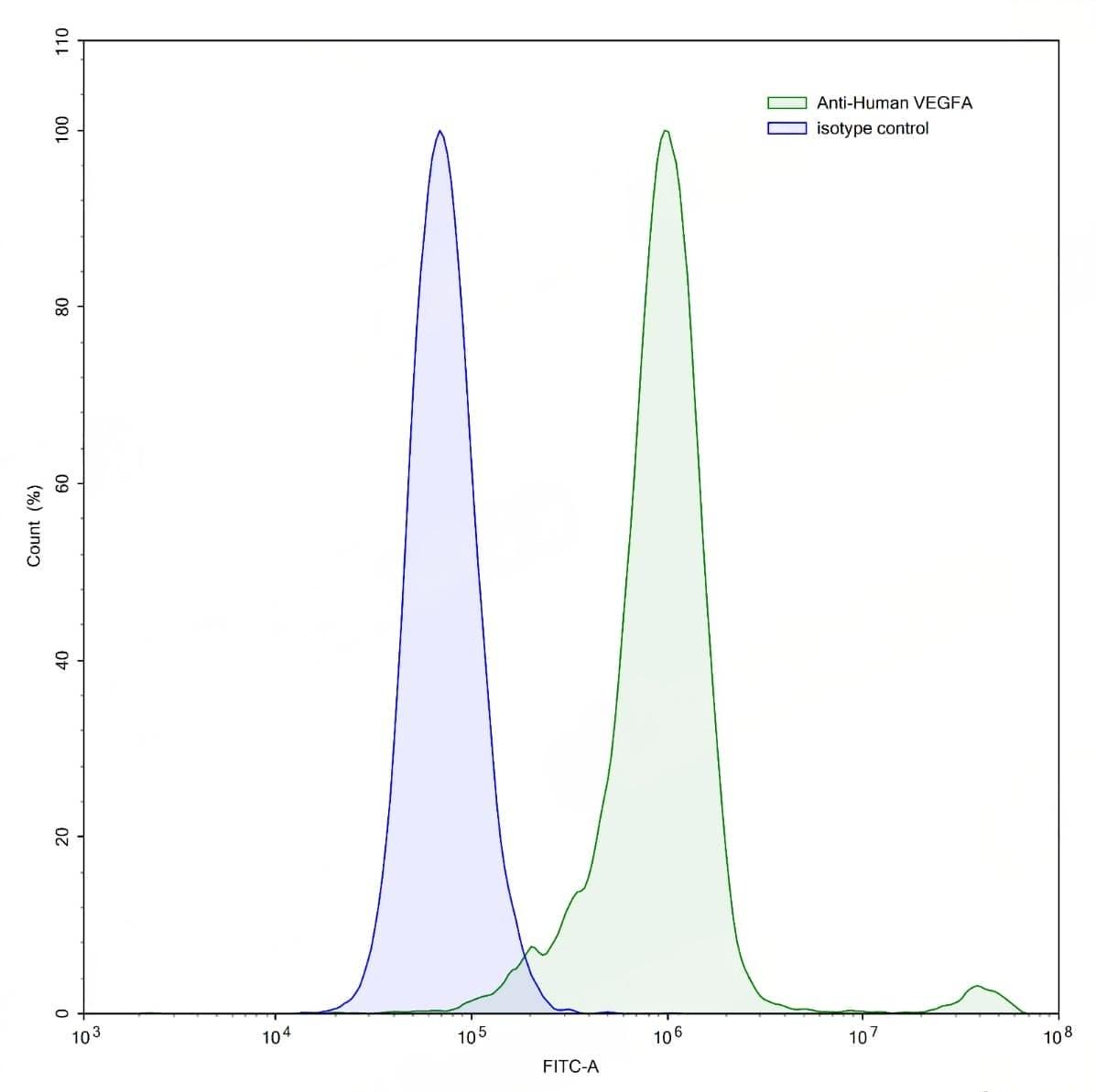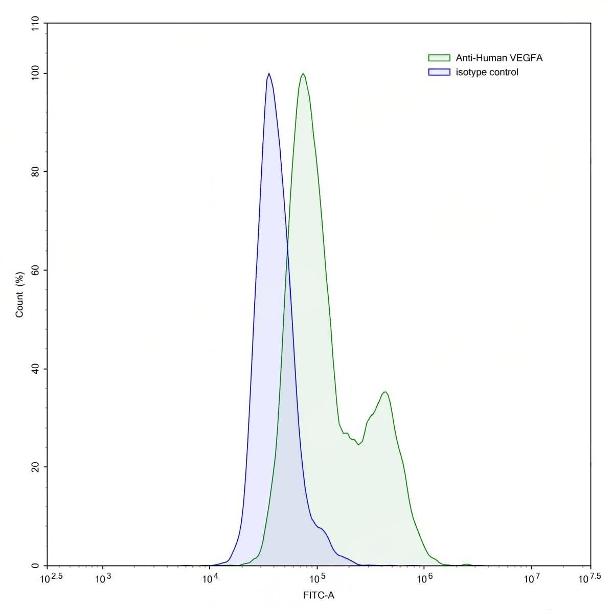 Detects Human VEGFA in indirect ELISAs. | Flow-cytometry using anti-human VEGFA antibody.VEGFA Transfected CHO cells were stained with an irrelevant antibody (Blue Histogram) or an anti-human VEGFA antibody monoclonal antibody (Catalog No.:TD-HB941013 ,Green Histogram) at a concentration of 5 µg/ml for 30 mins at RT. After washing, bound antibody was detected using a FITC conjugated goat anti-rabbit antibody (Catalog No.:TD-TF690414) and cells analysed on a NovoCyte Flow Cytometer.,Flow-cytometry using anti-human VEGFA antibody.HeLa cells were stained with an irrelevant antibody (Blue Histogram) or an anti-human VEGFA antibody monoclonal antibody (Catalog No.:TD-HB941013 ,Green Histogram) at a concentration of 5 µg/ml for 30 mins at RT. After washing, bound antibody was detected using a FITC conjugated goat anti-rabbit antibody (Catalog No.:TD-TF690414) and cells analysed on a NovoCyte Flow Cytometer.,Flow-cytometry using anti-human VEGFA antibody.U937 cells were stained with an irrelevant antibody (Blue Histogram) or an anti-human VEGFA antibody monoclonal antibody (Catalog No.:TD-HB941013 ,Green Histogram) at a concentration of 5 µg/ml for 30 mins at RT. After washing, bound antibody was detected using a FITC conjugated goat anti-rabbit antibody (Catalog No.:TD-TF690414) and cells analysed on a NovoCyte Flow Cytometer. | SDS-PAGE for Anti-Human VEGFA Antibody (SAA0531).