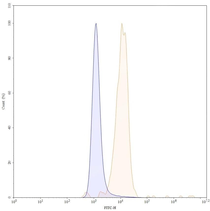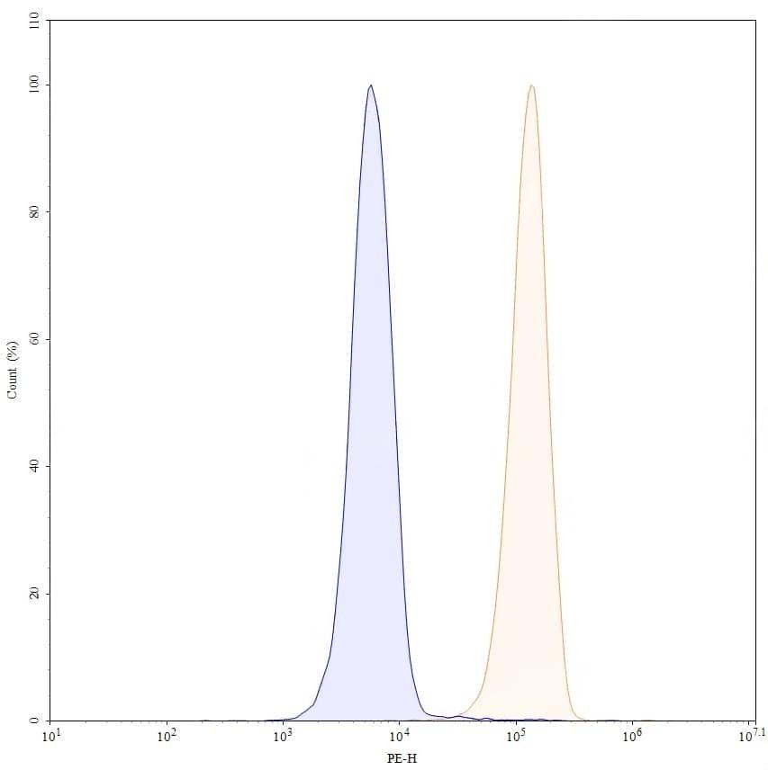 SEC-HPLC detection for Anti-Human CD40/TNFRSF5 Antibody (ABS2001). | Flow-cytometry using anti-human CD40 antibody. U2OS cells were stained with an irrelevant antibody (Blue Histogram) or an anti-human CD40 monoclonal antibody (Catalog No.:TD-HB782023, Yellow Histogram) at a concentration of 5 µg/ml for 30 mins at RT. After washing, bound antibody was detected using a a Goat Anti-Human IgG H&L Polyclonal Antibody, FITC (Catalog No.:TD-HF690414) and cells analysed on a NovoCyte Flow Cytometer. | SDS-PAGE for Anti-Human CD40/TNFRSF5 Antibody (SAA2006). | Flow-cytometry using APC anti-human CD40 antibody. U2OS cells were stained with an irrelevant antibody (Blue Histogram) or an APC anti-human CD40 monoclonal antibody (Catalog No.:TD-HB782023, Yellow Histogram) at a concentration of 5 µg/ml for 30 mins at RT. After washing, and cells analysed on a NovoCyte Flow Cytometer.,Flow-cytometry using PE anti-human CD40 antibody. U2OS cells were stained with an irrelevant antibody (Blue Histogram) or an PE anti-human CD40 monoclonal antibody (Catalog No.:TD-HB782023, Yellow Histogram) at a concentration of 5 µg/ml for 30 mins at RT. After washing, and cells analysed on a NovoCyte Flow Cytometer.