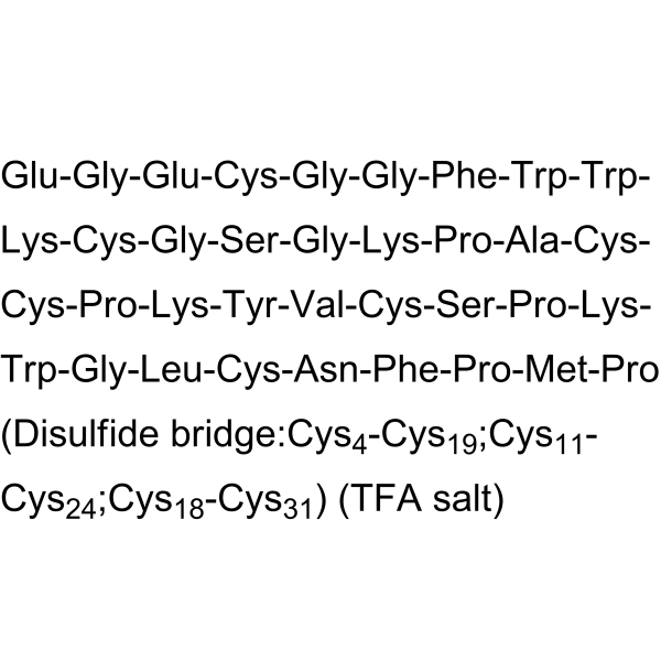 Glu-Gly-Glu-Cys-Gly-Gly-Phe-Trp-Trp-Lys-Cys-Gly-Ser-Gly-Lys-Pro-Ala-Cys-Cys-Pro-Lys-Tyr-Val-Cys-Ser-Pro-Lys-Trp-Gly-Leu-Cys-Asn-Phe-Pro-Met-Pro (Disulfide bridge:Cys4-Cys19;Cys11-Cys24;Cys18-Cys31) |