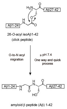 This product is a chemically-modified β-amyloid (1-42) precursor, which belongs to GenScript’s click peptides. The click peptides are best described by the following key features:1. Enhanced Stability—The O-acyl moiety within the click peptide is stable even under acidic pH.2. Convenient and quick process—The click peptides can be easily converted to native peptide at pH 7.4 or above.3. No by-product formation in the conversion process.4. Superior quality—After the click, the aggregative property of the peptides is significantly minimized compared to its native format. |