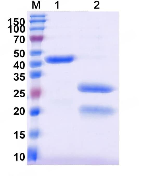 SDS-PAGE for 3C Protease | M: Marker1: Control2: Fusion protein digest with 3C proteaseCase studyFormulaconcentration1 mg/mlc mg/mlvolume100 µlV mlsubstrate100 µgcV mg10X Buffer11 µlV/9 ml3C Protease1 µlcV/100 mlMix the components thoroughly and incubate the reaction at 4°C for 16 hours. After incubation, take 2–10 µg of the control and digested sample for analysis by SDS-PAGE.