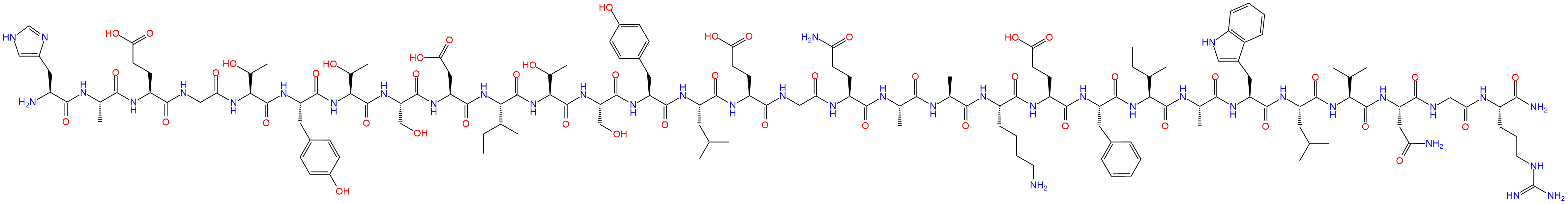 H2N-His-Ala-Glu-Gly-Thr-Tyr-Thr-Ser-Asp-Ile-Thr-Ser-Tyr-Leu-Glu-Gly-Gln-Ala-Ala-Lys-Glu-Phe-Ile-Ala-Trp-Leu-Val-Asn-Gly-Arg-CONH2