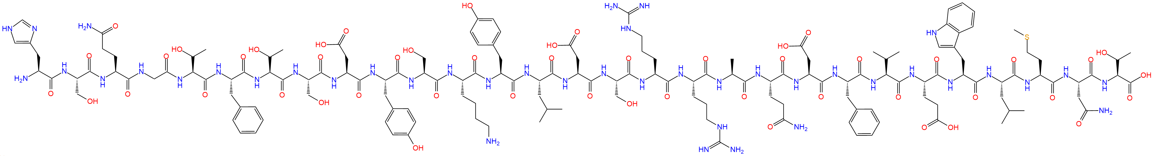 H2N-His-Ser-Gln-Gly-Thr-Phe-Thr-Ser-Asp-Tyr-Ser-Lys-Tyr-Leu-Asp-Ser-Arg-Arg-Ala-Gln-Asp-Phe-Val-Glu-Trp-Leu-Met-Asn-Thr-OH
