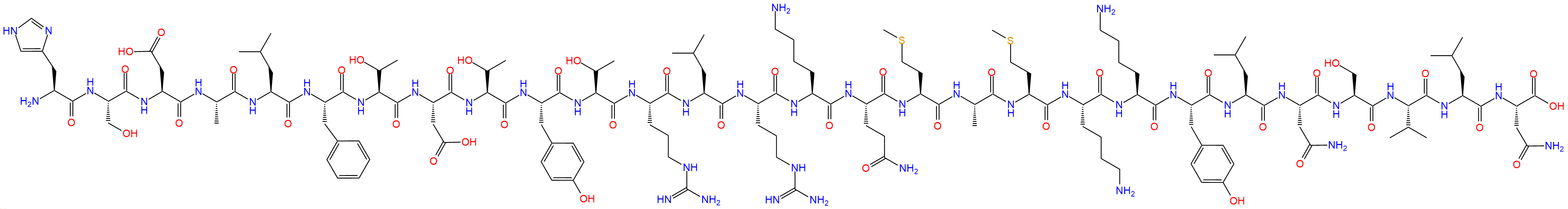 H2N-His-Ser-Asp-Ala-Leu-Phe-Thr-Asp-Thr-Tyr-Thr-Arg-Leu-Arg-Lys-Gln-Met-Ala-Met-Lys-Lys-Tyr-Leu-Asn-Ser-Val-Leu-Asn-OH