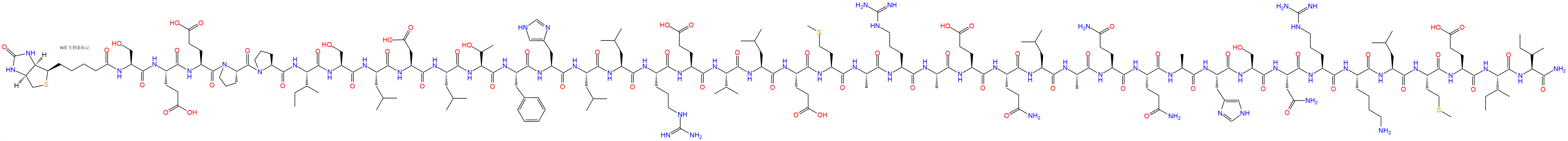 Biotinyl-Ser-Glu-Glu-Pro-Pro-Ile-Ser-Leu-Asp-Leu-Thr-Phe-His-Leu-Leu-Arg-Glu-Val-Leu-Glu-Met-Ala-Arg-Ala-Glu-Gln-Leu-Ala-Gln-Gln-Ala-His-Ser-Asn-Arg-Lys-Leu-Met-Glu-Ile-Ile-CONH2