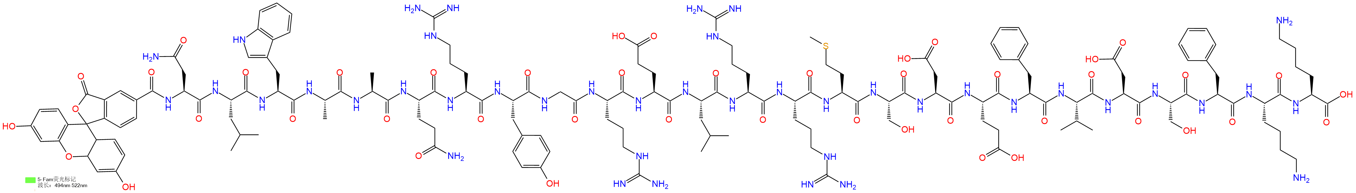 5FAM-Asn-Leu-Trp-Ala-Ala-Gln-Arg-Tyr-Gly-Arg-Glu-Leu-Arg-Arg-Met-Ser-Asp-Glu-Phe-Val-Asp-Ser-Phe-Lys-Lys-OH