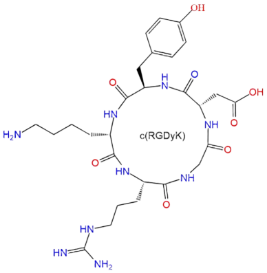 c(RGDyK)是一种由5个氨基酸组成的首尾酰胺环肿瘤靶向肽,它通过与细胞表面的 αvβ3 整合素结合,特异性靶向肿瘤微血管和癌细胞。
