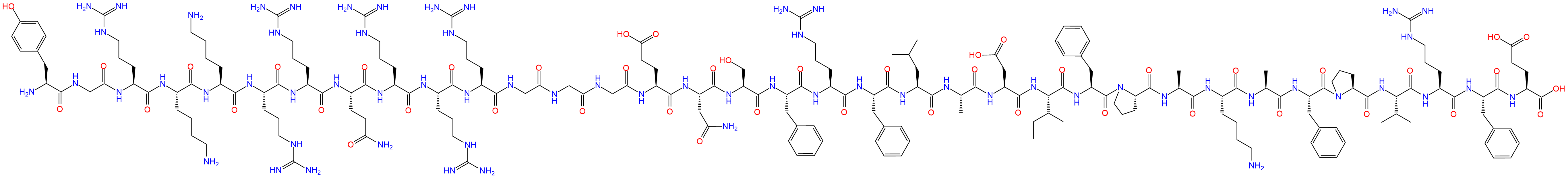 H2N-Tyr-Gly-Arg-Lys-Lys-Arg-Arg-Gln-Arg-Arg-Arg-Gly-Gly-Gly-Glu-Asn-Ser-Phe-Arg-Phe-Leu-Ala-Asp-Ile-Phe-Pro-Ala-Lys-Ala-Phe-Pro-Val-Arg-Phe-Glu-OH