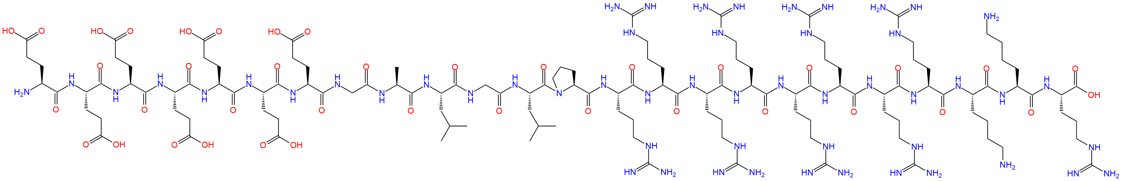 H2N-Glu-Glu-Glu-Glu-Glu-Glu-Glu-Gly-Ala-Leu-Gly-Leu-Pro-Arg-Arg-Arg-Arg-Arg-Arg-Arg-Arg-Lys-Lys-Arg-OH