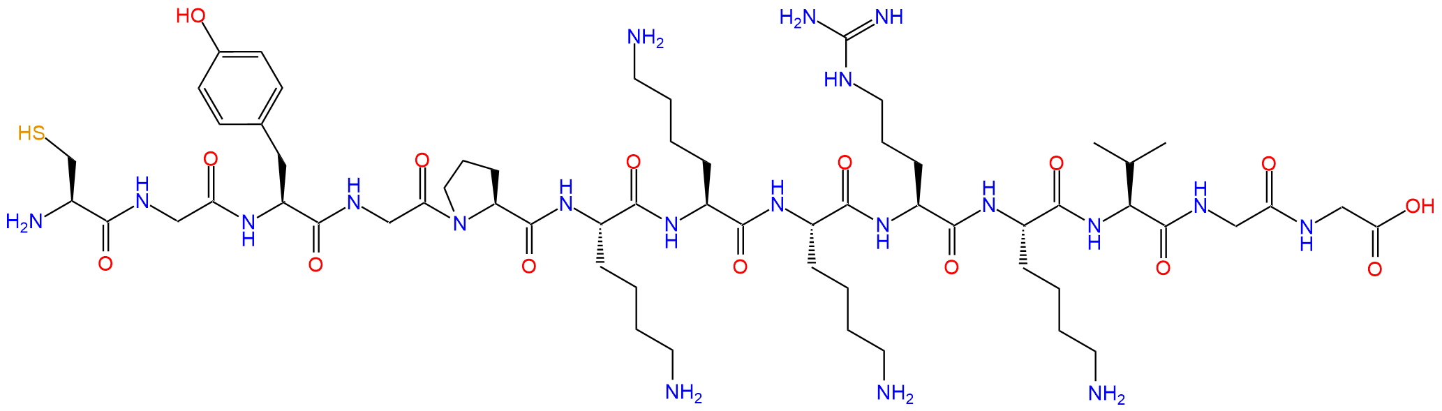 H2N-Cys-Gly-Tyr-Gly-Pro-Lys-Lys-Lys-Arg-Lys-Val-Gly-Gly-OH