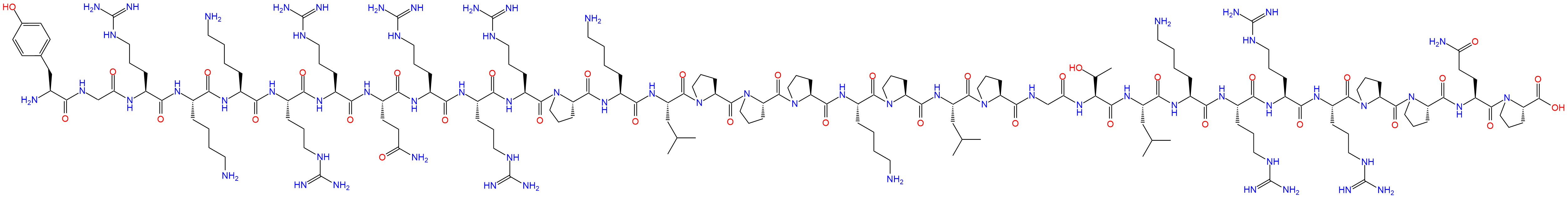 H2N-Tyr-Gly-Arg-Lys-Lys-Arg-Arg-Gln-Arg-Arg-Arg-Pro-Lys-Leu-Pro-Pro-Pro-Lys-Pro-Leu-Pro-Gly-Thr-Leu-Lys-Arg-Arg-Arg-Pro-Pro-Gln-Pro-OH