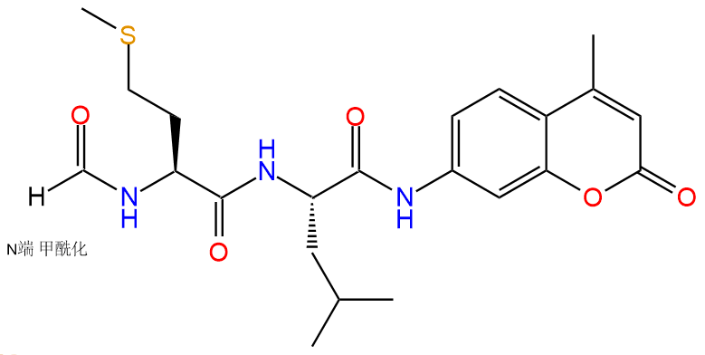 模仿fMLF的荧光底物。 在与亮氨酸氨基肽酶的偶联测定中监测N-甲酰基甲硫氨酸的去甲酰基化。