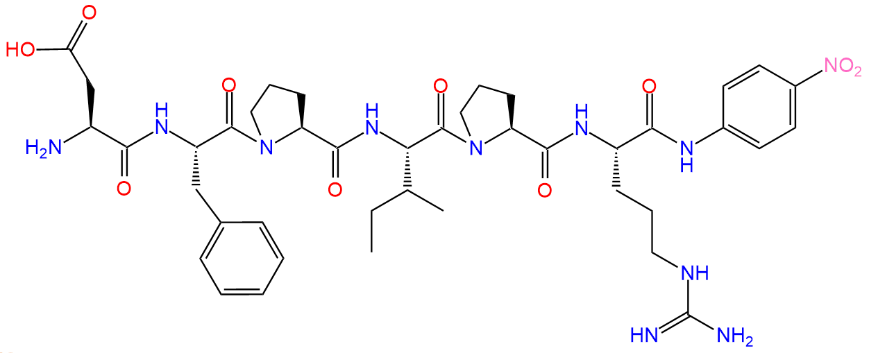 一种显色底物,在凝血酶的天然底物纤维蛋白原 α 链的 N 端部分之后形成。H-D-Phe-Pip-Arg-pNA acetate 对凝血酶有特异性,用于测定抗凝血酶肝素辅因子 (AT-III)。