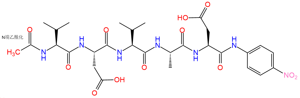 Ac-VDVAD-pNA是caspase-2 的显色底物多肽,序列中含有5个氨基酸,是caspase-2 的首选底物,Km值为53μM。