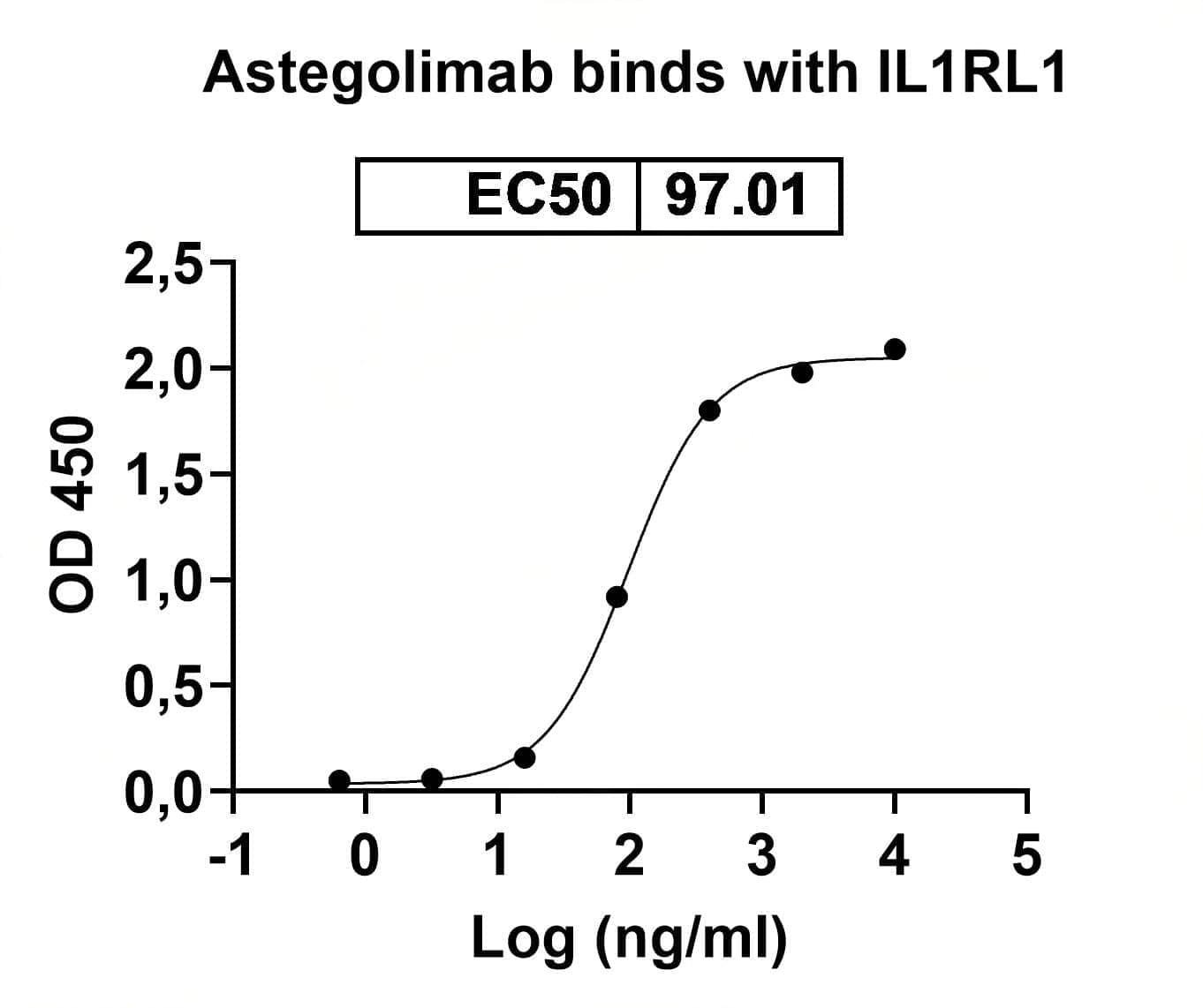 SDS-PAGE for Recombinant Human IL1RL1/ST2 Protein, C-His | Detects Human IL1RL1/ST2 Antibody in indirect ELISAs.,Detects Human IL1RL1/ST2 Antibody in indirect ELISAs.,Detected by Research Grade Astegolimab (Catalog No.:TD-MX139016) in indirect ELISA