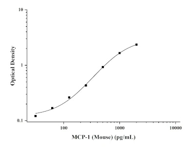 本试产品采用双抗体夹心ELISA法。用抗Mouse MCP-1抗体包被于酶标板上,实验时样品(或标准品)中的Mouse MCP-1会与包被抗体结合。后依次加入生物素化的抗Mouse MCP-1抗体和HRP酶标记的亲和素,抗Mouse MCP-1抗体与结合在包被抗体上的Mouse MCP-1结合,生物素与亲和素特异性结合而形成免疫复合物,游离的成分被洗去。加入显色底物(TMB),TMB在HRP酶的催化下呈现蓝色,加终止液后变成黄色。用酶标仪在450 nm波长处测OD值,Mouse MCP-1浓度与OD450 OD值之间呈正比,通过绘制标准曲线计算出样品中Mouse MCP-1的浓度。