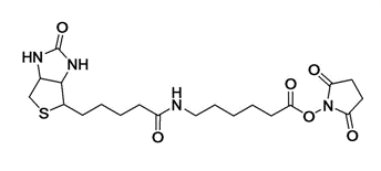 Succinimidyl 6-(biotinamido)hexanoate(NHS-LC-Biotin) is an amino-reactive biotinylation reagent with a long spacerarm. The NHS-LC-Biotin molecule is cell membrane permeable and can be used tolabel intracellular proteins.