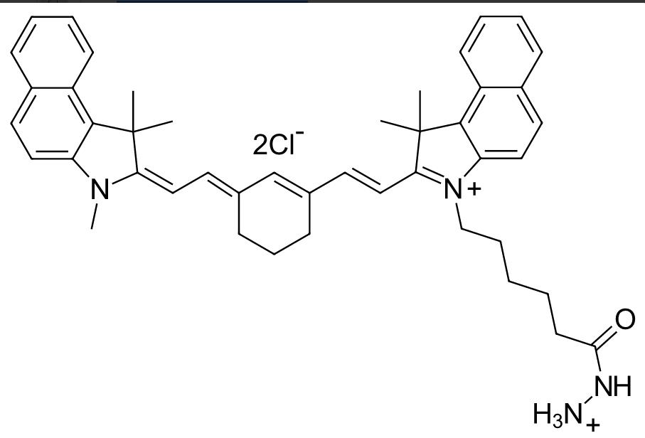 Sulfo-CY7.5 hydrazide 一种水溶性荧光染料A carbonyl-reactive hydrazide derivative of Cyanine7.5 near infrared (NIR) fluorophore. This dye has similar spectral properties with ICG (indocyanine green), but has a higher quantum yield of fluorescence. Hence, this fluorophore is ideal for in vivo imaging.This is a carbonyl-reactive dye which is particularly useful for the labeling of antibodies after periodate oxidation. It also labels other carbonyl compounds (aldehydes and ketones), for example, many saccharides.