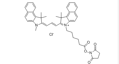Cyanine3.5 NHS ester is a reactive dye for the labeling of amino-groups in peptides, proteins, and oligonucleotides.
