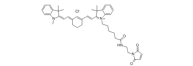 Near-infrared, sulfhydryl reactive Cyanine7 dye, an analog of Cy7® maleimide.This reagent allows to attach near infrared Cyanine7 dye to proteins with free sulfhydryl groups. Labeled proteins thus obtained are used in NIR bioimaging applications. NIR imaging systems can be used to visualize distribution of labeled proteins in tissues even in live organism.