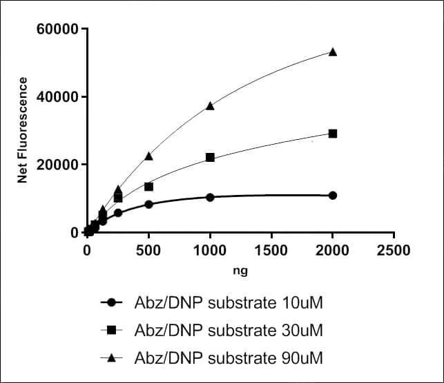 SDS-PAGE for Recombinant Staphylococcus aureus srtA/Sortase A Protein, C-His | Sortase A (SrtA) could cleave and catalyze Sortase Substrate III, Abz/DNP. The Sortase A activity is tested by the cleavage of substrate and detecting at Ex/Em=320 nm/420 nm.
