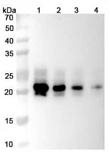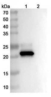 Use a manual defrost freezer and avoid repeated freeze thaw cycles. Store at 2 to 8°C for frequent use. Store at -20 to -80°C for twelve months from the date of receipt.